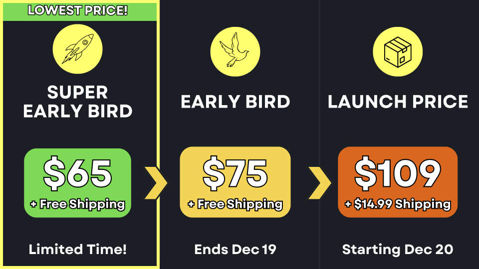 Your card is charged at checkout to reserve your preorder price tier and help us schedule bulk production.